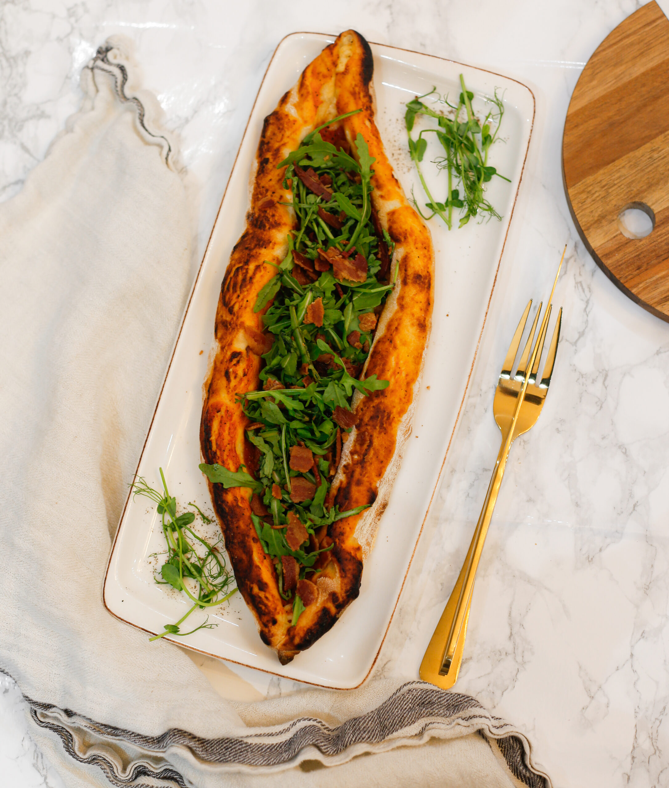 A tarte flambée-t általában frissen sütve tálalják, forrón és ropogósan. Mivel könnyű és ízletes fogás, tökéletes előételként vagy könnyű vacsoraként szolgálhatunk fel, de akár önálló főételként is felszolgálhatjuk egy friss salátával vagy más körettel.