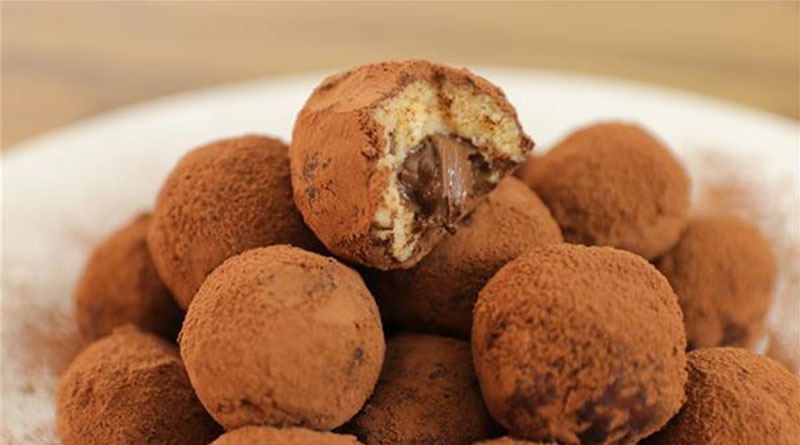 - Az elkészült golyókat cukrozatlan kakaóporba forgatjuk.