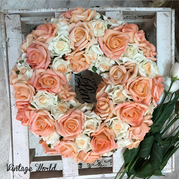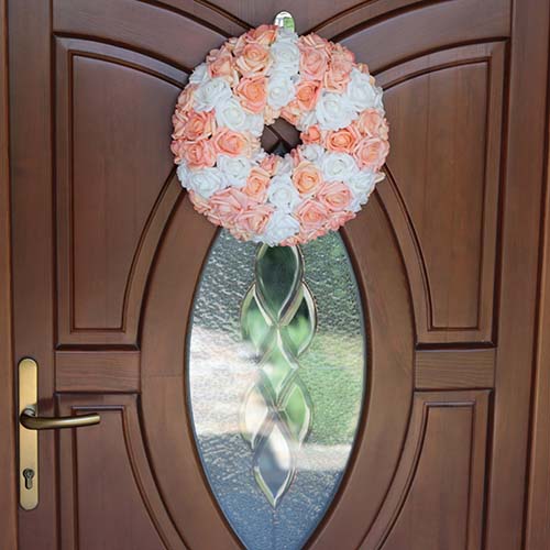 Varázsold otthonodba harmóniát ezzel a gyönyörű kézzel készített Amsterdam ajtókopogtató-val. Az ajtókopogtató a gyártás minden folyamatában egyedileg, narancs és fehér habrózsákból készült.