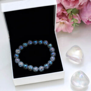 Az angyalaura karkötő mesés kék színe az elegancia és spirituális fejlődés szimbóluma, a nőiességet és az időtállóságot hangsúlyozza. Az angyalaura kvarc energetikailag segíthet növelni az önismeretet és az önbizalmat.