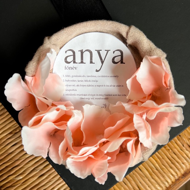 Egyedi tervezésű selyemvirág kompozíció, mely tökéletes ajándék Anyák napjára. A kompozíció középpontjában az „ANYA” szó áll, melyet meseszép virágok vesznek körül. Az üzenet szeretetteljes és személyes, a virágok pedig mesés színekben pompáznak, melyeket élénkzöld levelek kereteznek.
