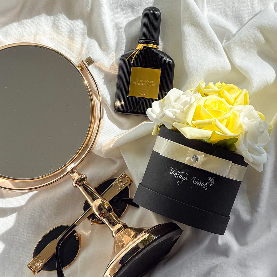 A prémium minőségű habrózsák részletgazdag kidolgozásuknak köszönhetően megtévesztésig hasonlítanak az élő virágokra, mégis éveken át megőrzik formájukat és színüket. A fekete kerek doboz és a finom szatén szalag luxus érzetű, így önmagában is exkluzív meglepetés.