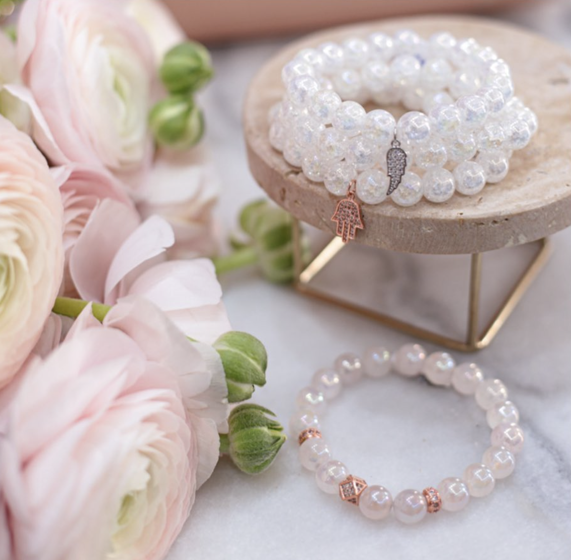Az angyalaura karkötő fehér színe a tisztaság és spirituális fejlődés szimbóluma, míg a rózsaarany dísz a nőiesség és a szépség hangsúlyozását szolgálják. Az angyalaura kvarc energetikailag segíthet növelni az önismeretet és az önbizalmat.