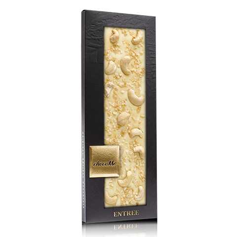 A bourbon vanília természetes, meleg aromája elegánsan simul bele a fehércsokoládé karakterébe, miközben mélységet és harmonikus lecsengést ad minden falatnak. A kandírozott citromhéj friss, enyhén citrusos jegyei üdítő kontrasztot teremtenek, ellensúlyozva a csokoládé édességét. A kesudió lágy roppanóssága és finoman krémes íze textúrában is gazdagítja az élményt, így a csokoládé egyszerre marad könnyed és izgalmas.