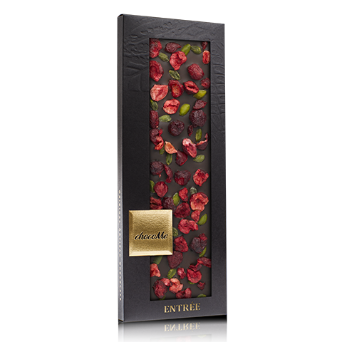 Összetevők: étcsokoládé, pisztácia, liofilizált meggy.