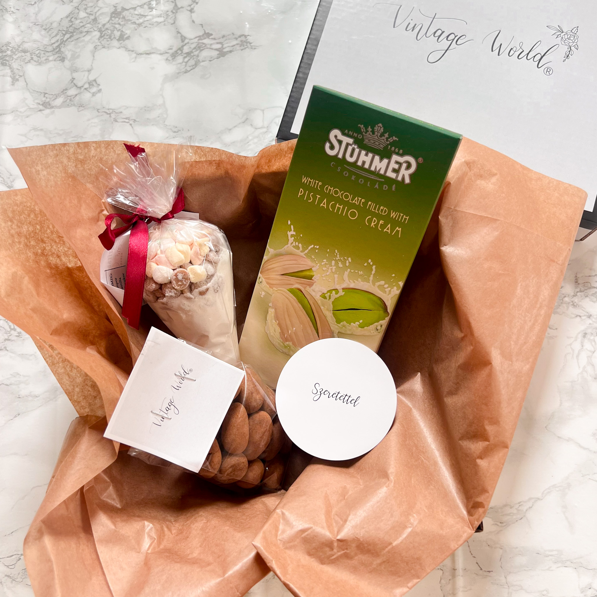 - 1 db választható DIY forró csokoládé: karamellás, tejcsokis, fehércsokis