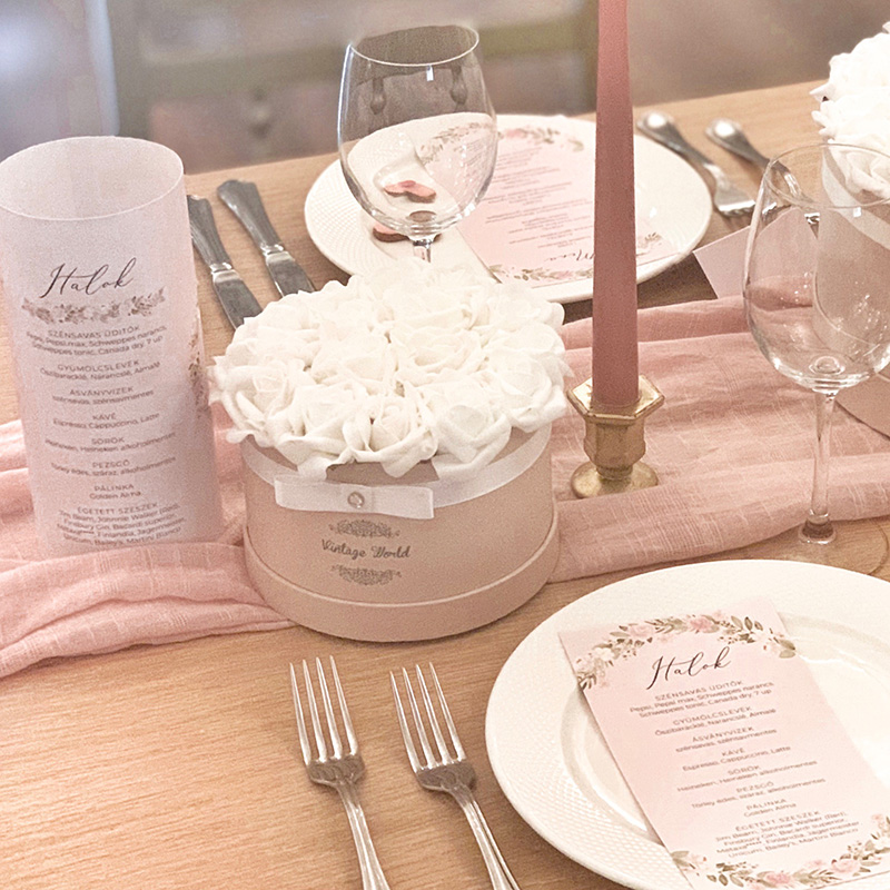 A habrózsadoboz a gyártás minden folyamatában egyedileg és kézzel készül. Elegáns színeivel a Sydney esküvői habrózsadoboz gyönyörű esküvői dekorációs elem, mesés asztaldísz, de a főasztal díszítésére vagy szülőköszöntő ajándéknak is tökéletes választás.