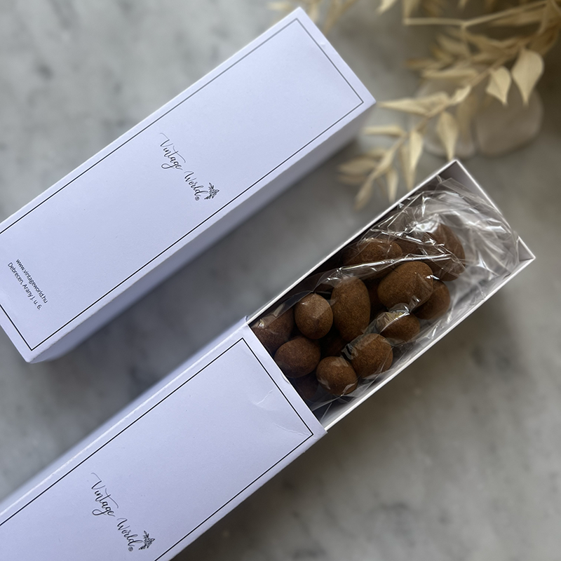 Különleges fahéjas tejcsokoládés mandula édességünk nem csupán egy nassolnivaló, sokkal inkább egy apró, de emlékezetes élmény. A gondosan válogatott, ropogósra pörkölt mandulaszemeket selymes tejcsokoládéba mártjuk, majd egy finom fahéjréteg koronázza meg az ízélményt. Az eredmény: édes, fűszeres, telt és meleg ízvilág, amely azonnal ünnepi hangulatot varázsol, évszaktól függetlenül.