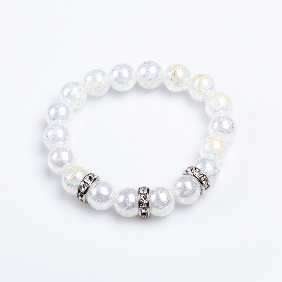 Hestiel angyal aura kvarc karkötő fehér színben 3 darab ezüst, csillogó kiegészítővel.
