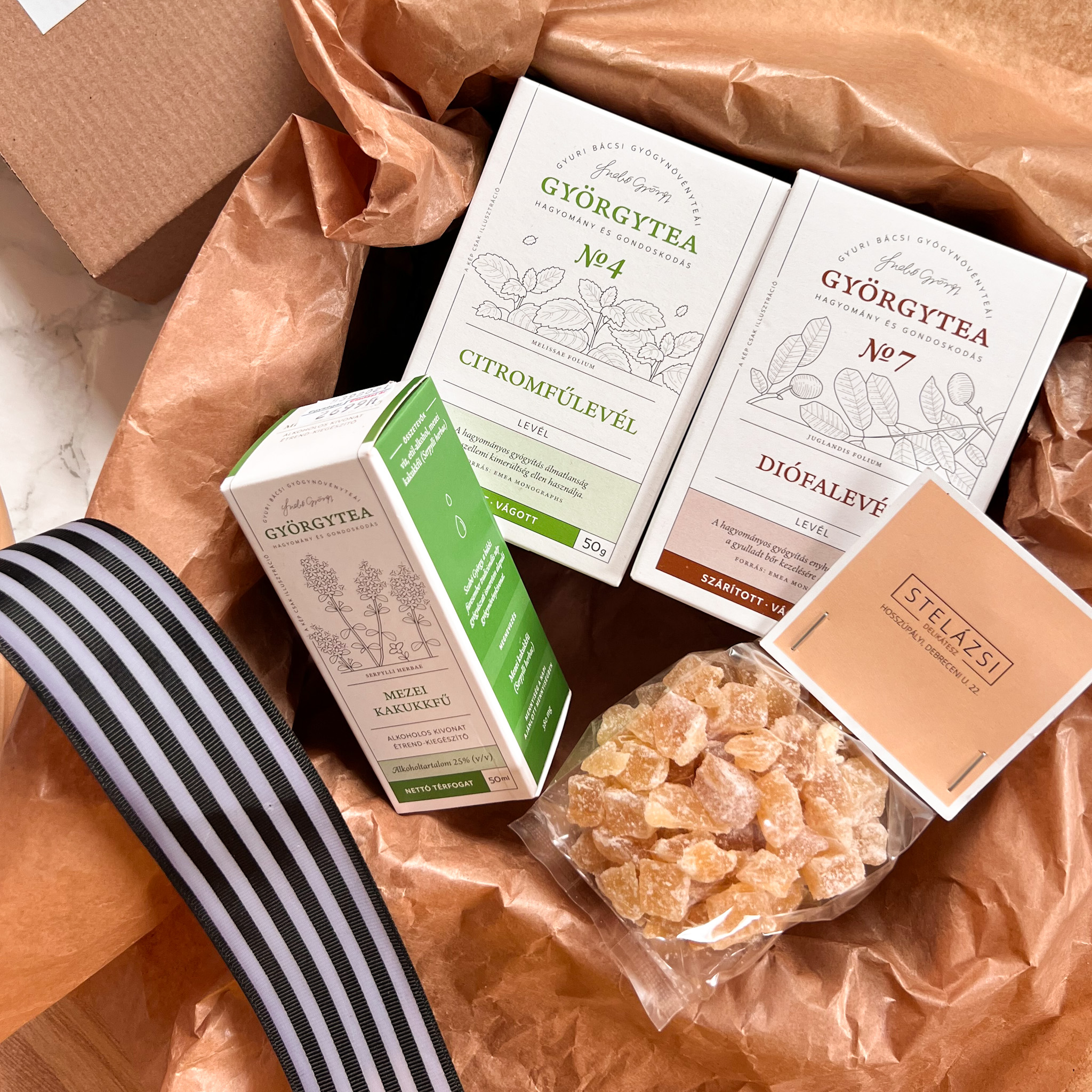 - Gyuri bácsi citromfüves teakeverék – Nyugtató hatású, frissítő ízű tea, amely segít az ellazulásban és az immunrendszer támogatásában.