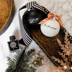 Fedezd fel ezt a stílusos, 8 cm átmérőjű karácsonyi üveggömböt, amely egy egyszínű szaténszalag masnival érkezik hozzád. Az üveggömbre 4-5 szóig terjedő személyes üzenetet vagy nevet kérhetsz, de az igazán letisztult és elegáns megjelenés érdekében javasoljuk, hogy válassz csak 1-2 szót.