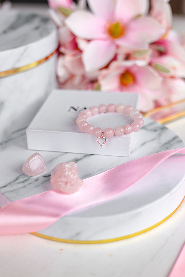 Engedd, hogy bemutassuk neked a rózsakvarc karkötőt, mely rózsaszín színével és a rózsarany, cirkónia köves szív alakú medáljával egyszerre szemet gyönyörködtető és energetikailag kiegyensúlyozó ékszer. A rózsakvarc az általa hordozott tulajdonságok révén az érzelmi gyógyulás és szeretet ásványa. Viselése segíthet abban, hogy megtaláld a belső harmóniát és erősítsd a kapcsolataidat.