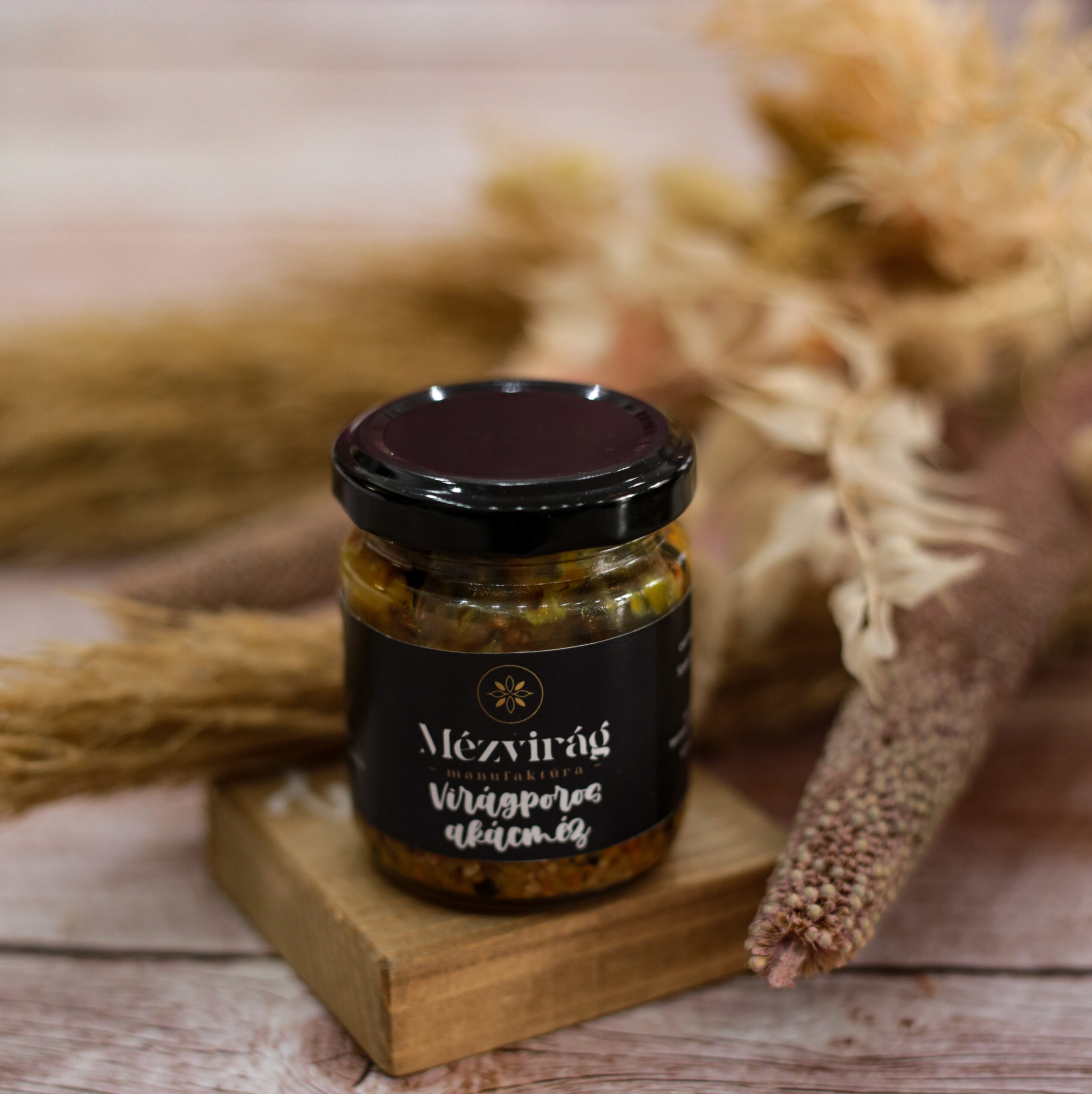 A virágporos méz virágpor és akácméz keveréke. Együtt, a szervezet számára szükséges legtöbb anyagot tartalmazza, mindezt természetes formában. A virágporban ásványi anyagok és nyomelemek, vitaminok, aminosavak, valamint baktériumölő anyagok találhatók. Jelentős a fehérjetartalma. Élénkítő hatású, fokozza a szellemi teljesítményt és a koncentráló készséget.
