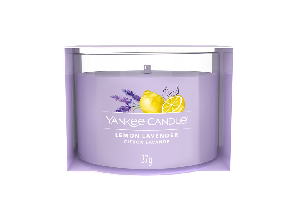 A Yankee Candle Lemon Lavender mintagyertya (citrom és levendula) tiszta, barátságos és frissítő illatélményt kínál egy praktikus, üvegpoharas kivitelben. A citrusos illatcsalád kedvelt darabja, amelyben a lédús citrom és a mandarin élénk jegyei találkoznak az aromás levendula lágy virágosságával.