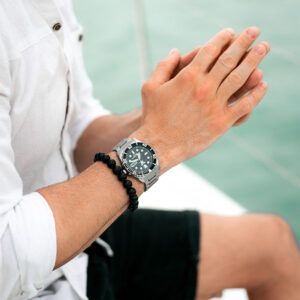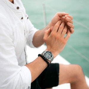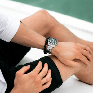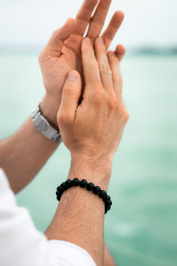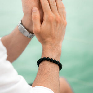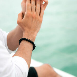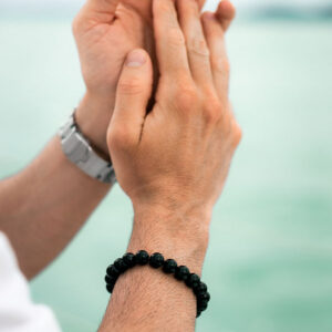 ‘Zakkiel’ fekete színű, ónix ásványból készült férfi karkötő, mely egyedülálló szépségével és energetikájával emelkedik ki a férfiaknak szánt ajándékok közül. Az ónix egy erős és stabil ásvány, amelynek viselése segít a belső erő megtalálásában és az élet kihívásaival való megbirkózásban.